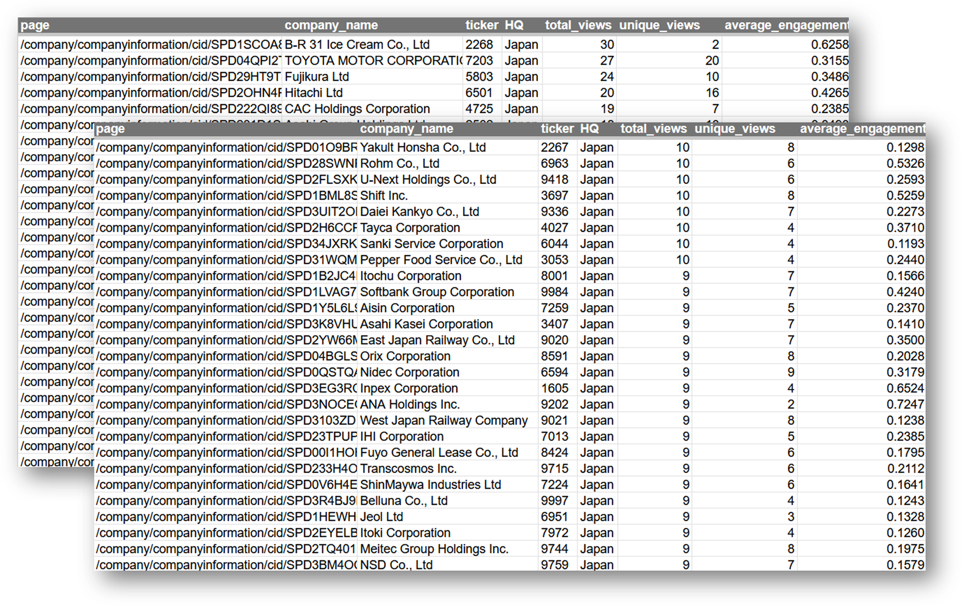 Identify interest in companies and industries in Japan through user search activity on Speeda, Japan’s leading market intelligence platform.